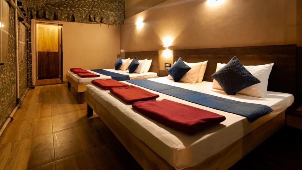 Located just 15 km away from Dandeli city, surrounded by evergreen forest. Pool View Jungle Resort offers Deluxe Rooms, Maharaja Tents, Dormitory and Camping Tents. Best suited for Families and Couples.